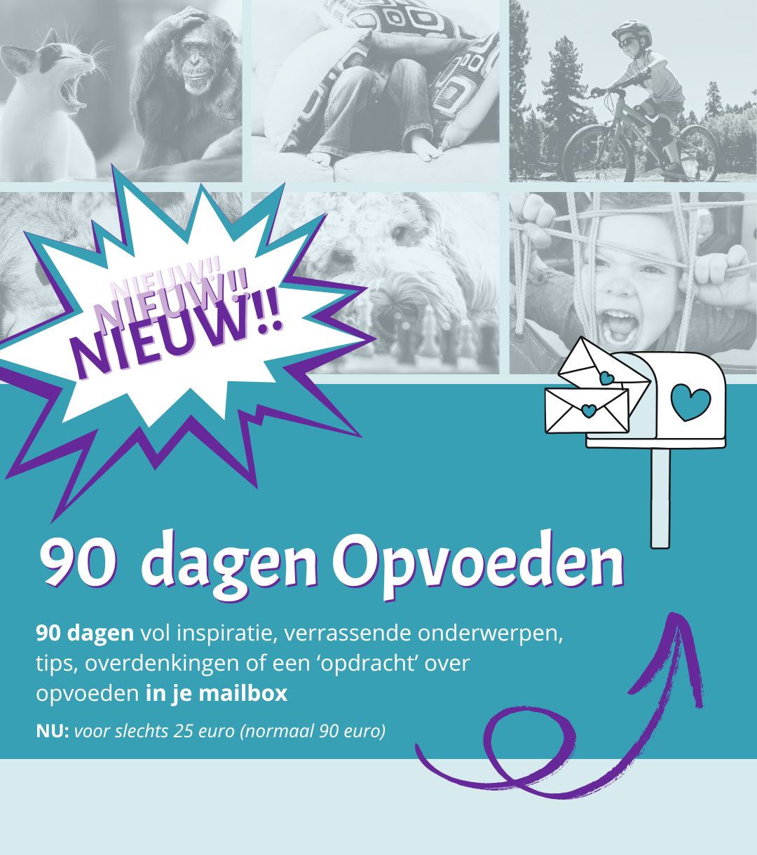 Schrijf je dan nu in voor het programma 90 dagen opvoeden waar je 90 dagen lang inspiratie, tips, feiten en achtergronden krijgt over alle onderwerpen die je tegenkomt tijdens het opgroeien van je kind.